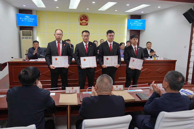 11月7日,平舆县第十五届人大常委会第三十二次会议召开,经过审议和表决,通过了平舆县人民法院4名审判员的职务任命提请。平舆县人大常委会主任胡艳红为新任命人员颁发了任命书。