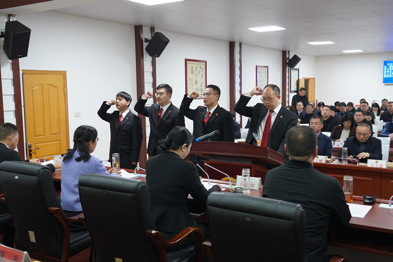会上,平舆法院党组书记、院长李光明向县人大常委会宣读了任免提请,朱成奎代表拟任职人员作表态发言。在与会代表的见证下,新任命审判员集体进行了庄严的宪法宣誓。