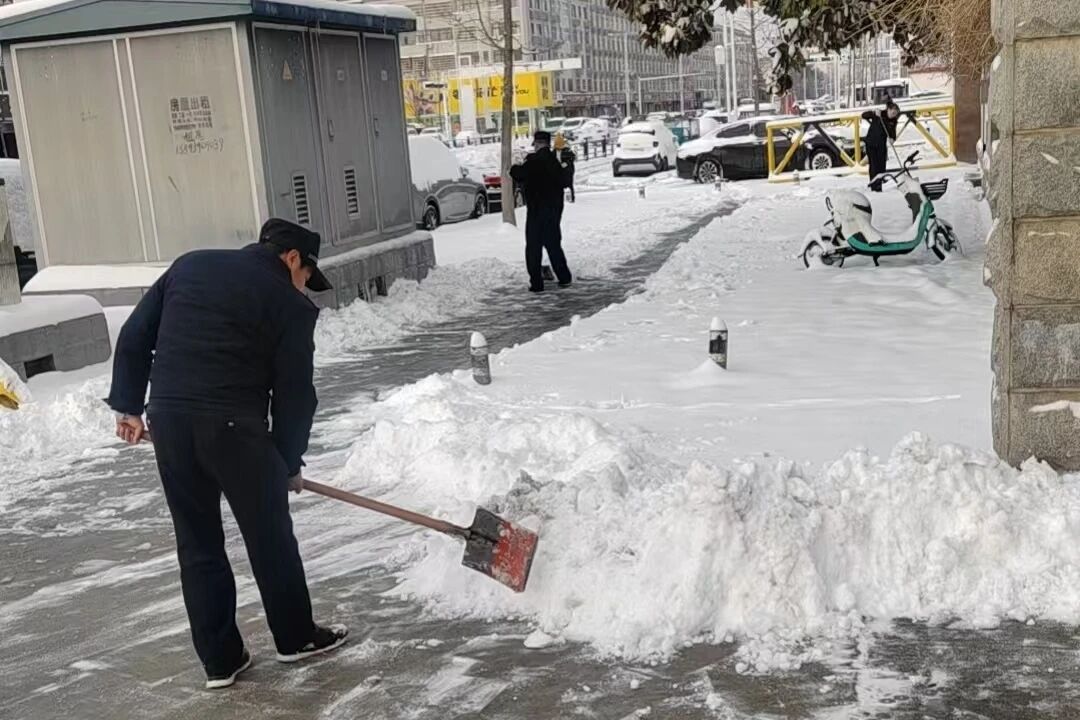 同时,为保障来院群众安全通行,机关院内的扫雪除冰工作也有序开展。干警们分区域对法院办公楼前、停车场出入口及院周边人行道的积雪积冰进行了彻底清理,保障了院内办公秩序和人员安全。