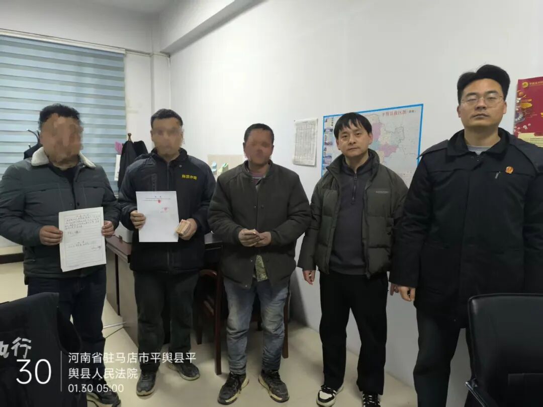 1月30日,平舆县人民法院执行局办公室里,农民工老李和工友仔细点完现金,紧锁多日的眉头悄然舒展。